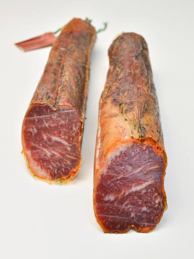 La caña de lomo de bellota 100% ibérica de LINAJE DEL CAMPO es un tesoro gastronómico, un placer para los sentidos. Un embutido elaborado de forma natural mediante una receta tradicional con más de cien años de antigüedad. Se caracteriza por tener una gran infiltración de grasa que le da ese veteado peculiar e inconfundible.